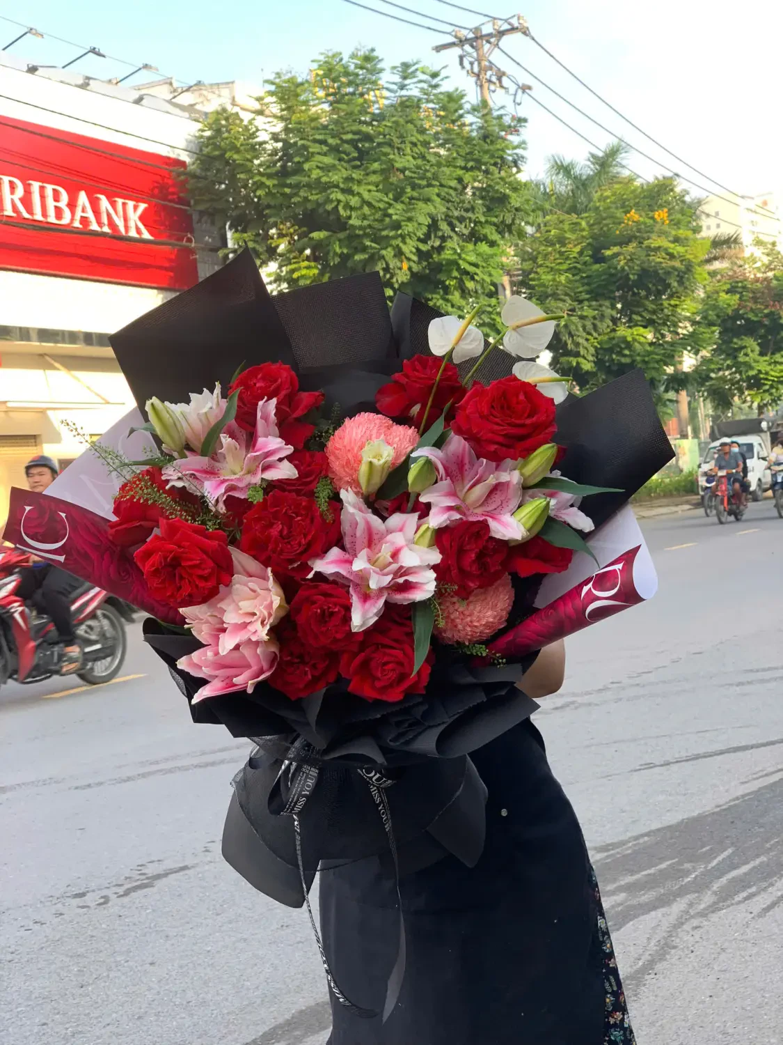 Bó hoa hồng ohara đỏ mix lyly kép là một thiết kế mang phong cách hiện đại, sang trọng với sự kết hợp giữa sắc đỏ rực rỡ và tông hồng trắng thanh tao. Đây là sự lựa chọn tuyệt vời cho các dịp kỷ niệm, chúc mừng hoặc bày tỏ tình cảm chân thành.