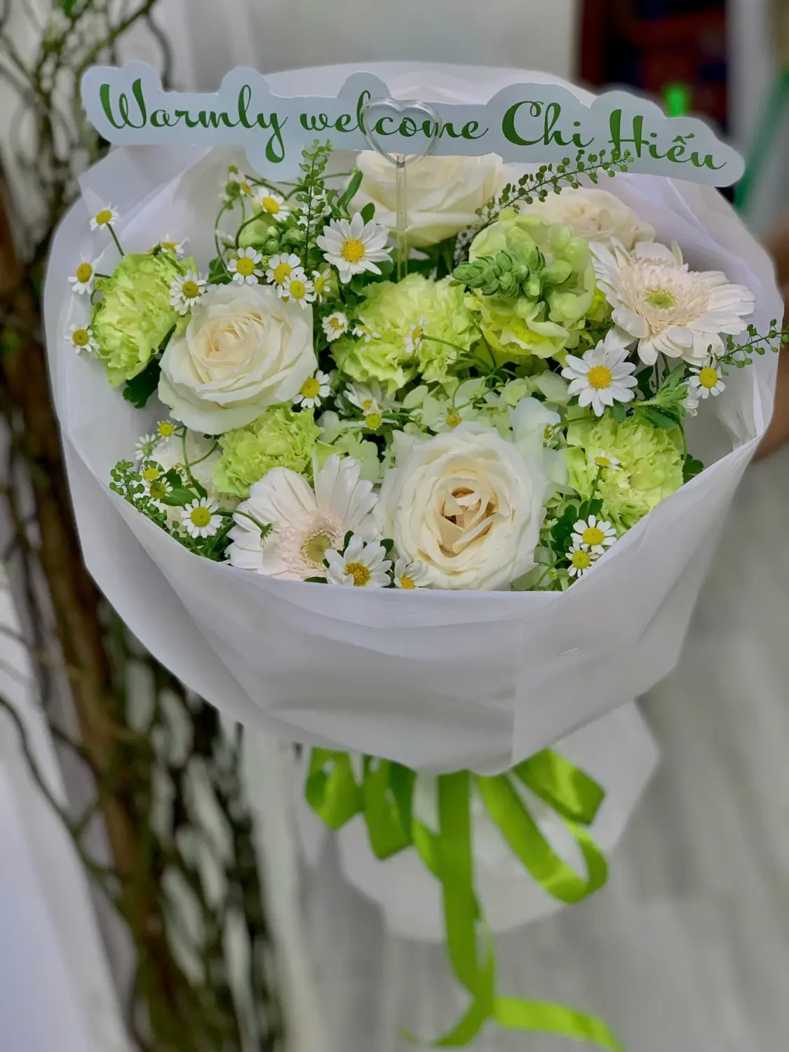 01122512 - Bó hoa tốt nghiệp tone xanh