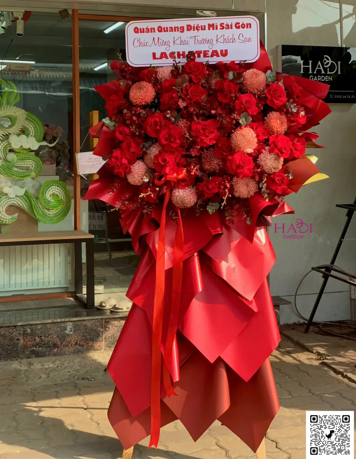 14112517 - kệ hoa tone đỏ mix full lan moka và mẫu đơn