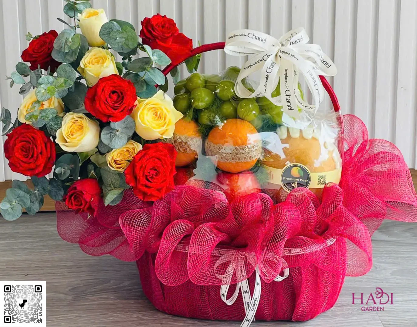 24022627 - giỏ quả kèm hoa